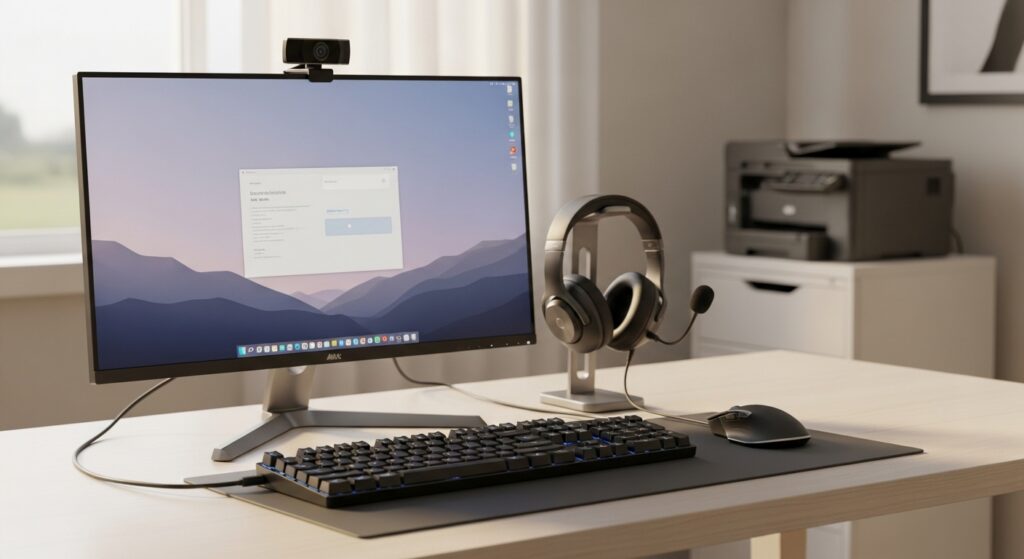 – Claviers, souris, webcams, casques audio